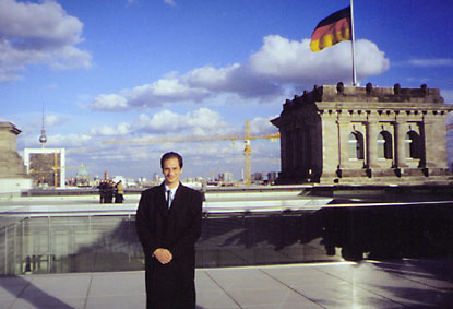 David Diego on top of the Reichstag (the German Parliament) and West Berlin behind him - March 2001